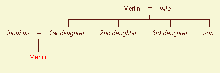 De bovenstaande genealogie is gebaseerd op de Historia regum Britanniae, geschreven door Geoffrey of Monmouth, in 1137. Geoffrey was de eerste die de naam Merlijn gebruikte (of Merlinus, aangezien hij de Historia in het Latijn had geschreven).