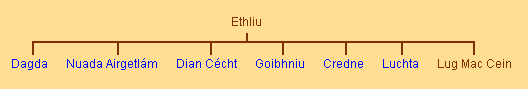 Hieronder is nog een alternatieve genealogie, die laat zien dat de zeven Danann-kampioenen of stamhoofden toevallig de zeven zonen van Ethliu waren.
