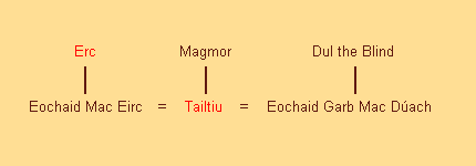 Eochaid Mac Erc was de laatste Firbolg-koning in Ierland, en hij stierf in de strijd. Eochaid was getrouwd met Tailtiu, dochter van de Koning van Spanje, die soms Magmor werd genoemd (hoewel dit de naam van een plaats zou kunnen zijn). Tailtiu was ook de pleegmoeder van de Danann-held, Lugh Lamfada. Een van de grote feesten in Ierland was naar haar vernoemd. Lugh hield een feest en begrafenisspelen na haar dood.