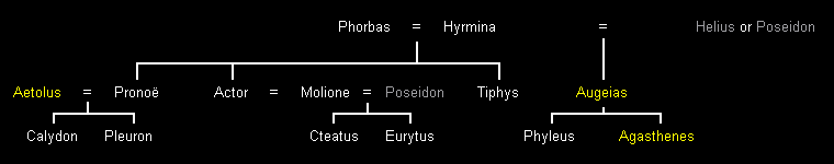 Hieronder staat een alternatieve stamboom voor de kinderen en kleinkinderen van Phorbas. Deze is in wezen hetzelfde, behalve dat Augeias soms als de zoon van Helios of Poseidon werd beschouwd, en niet van Phorbas.