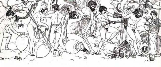Toen het grootste deel van de bemanning het bos inging op zoek naar voorraden, vielen de Gegenees het schip aan, ziende dat slechts enkele mannen het schip bewaakten. Maar Heracles was een van degenen die de Argo bewaakten. Heracles doodde veel van de reuzen en hield hen op afstand totdat Jason met de andere Argonauten terugkeerde. Na het doden van de rest van de Gegenees, zeilden ze weer weg.