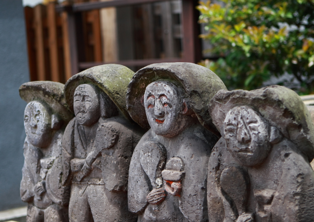 Daikokuten was een god van geluk en rijkdom. Hij was overgenomen uit andere mythologieën, maar werd in Japan veranderd in een vrolijke, gelukkige en gulle god. Hij kan in zijn vroege geschiedenis als wraakzuchtig zijn afgebeeld, maar later was hij glimlachend en blij. Hij droeg een zak en een hamer bij zich.