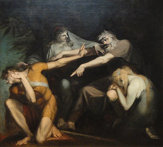 Oedipus die zijn zoon Polynices vervloekt voor diens noodlottige ballingschap